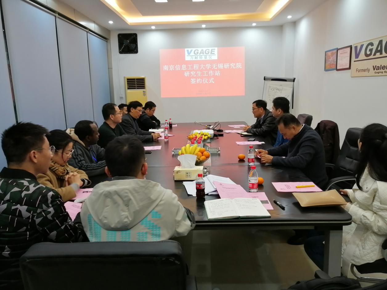 11月25日,南京信息工程大学无锡研究院、无锡万奈特测量设备有限公司在万奈特公司会议室举办校企合作签约仪式。无锡市锡山区企业家协会副会长沈家琪、无锡万奈特测量设备有限公司董事长贾永强、总经理莫志刚、南京信息工程大学无锡研究生院院长杨再强、无锡研究院副院长柯福阳、南京信息工程大学教授管海燕、副教授王新志、滨江学院博士Lsaacs、Baw 及在校研究生代表出席了签约仪式,签约仪式由无锡万奈特测量设备有限公司总经理莫志刚主持。