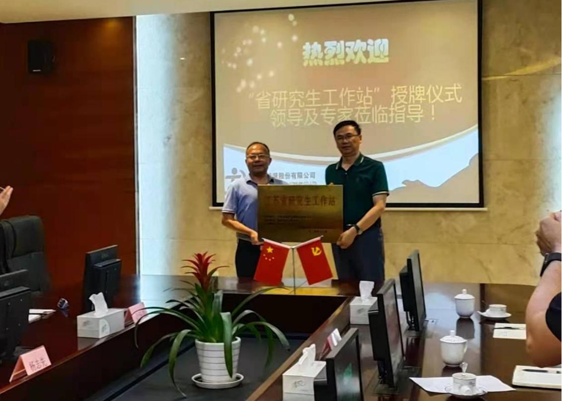 仪式上杨再强院长和龚国才院长为“省研究生工作站”揭牌。