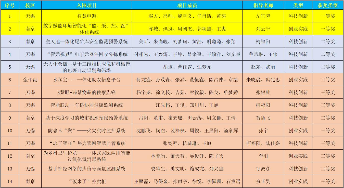 表一:南京信息工程大学无锡研究院2022年研究生创新创业大赛决赛一、二、三等奖获奖项目