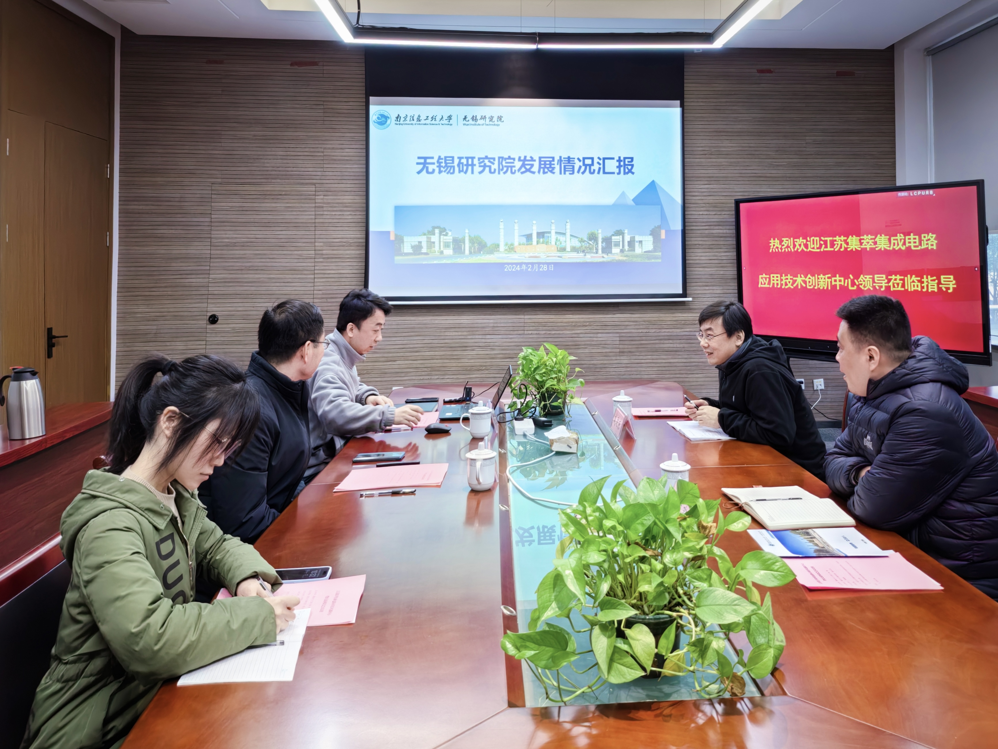 新春第一访,携手谱新章。2月28日上午,江苏集萃集成电路应用技术创新中心(以下简称“中心”)副主任戚运东一行来无锡研究院进行考察调研,会议由无锡研究院副院长柯福阳主持。