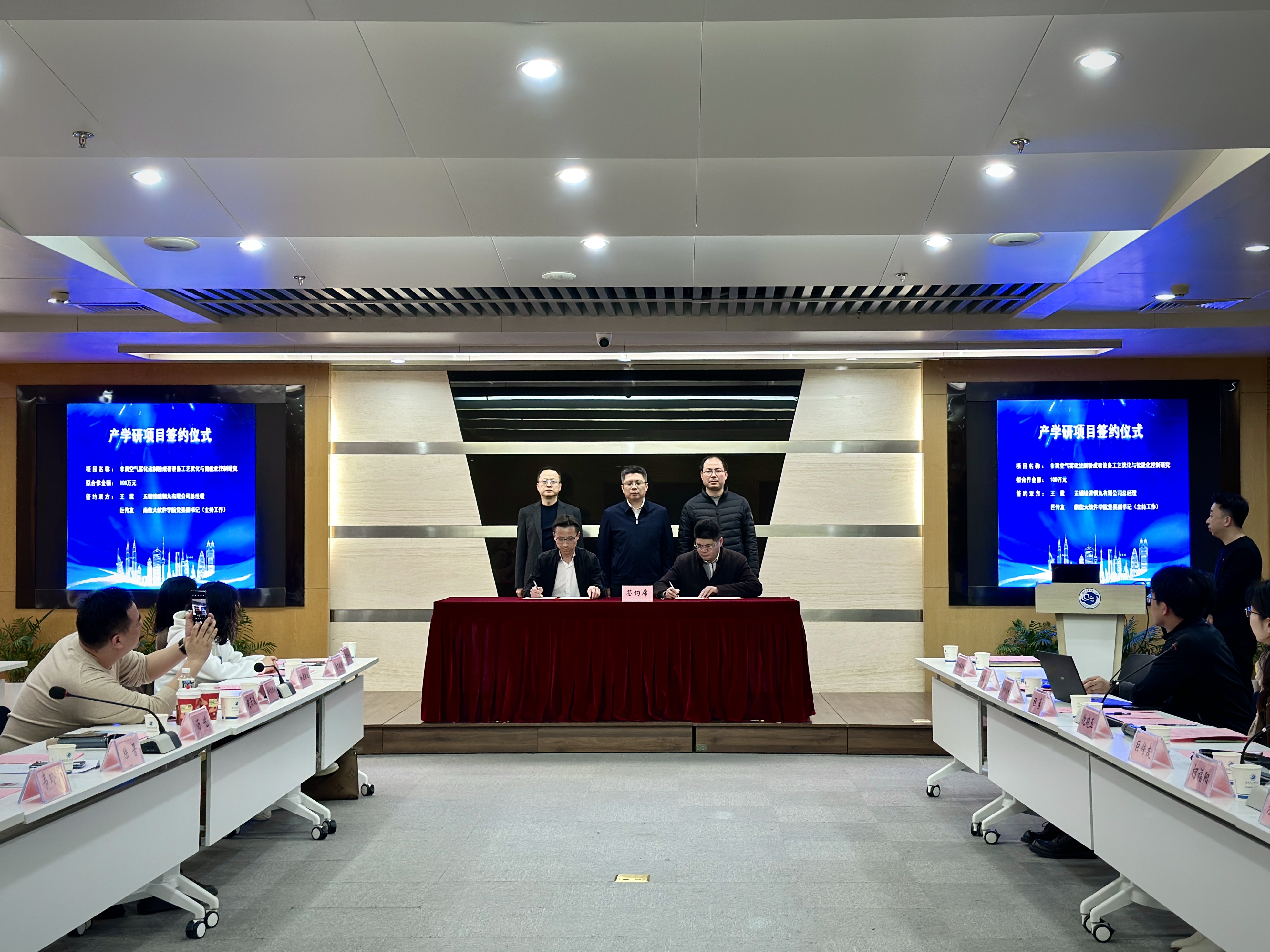 会后,倪晓玉为连城凯克斯科技有限公司等4家企业进行研究生实践创新基地授牌。软件学院党委书记巨传友与无锡锋速钢丸有限公司总经理王霆共同签署了《非真空气雾化法制粉成套设备工艺优化与智能化控制研究》校企产学研合作项目。