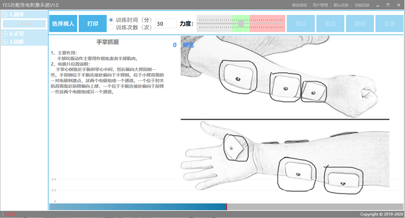 本项目以实现无监护主动上肢康复训练为目的,建立康复系统载体,通过康复评估大数据平台,为患者定制个性化康复任务,并实现实时康复动作反馈。设计实现了三通道功能性电刺激(Functional Electrical Stimulation, FES)上肢康复训练系统,使患者能够开展上肢相关康复训练任务;通过自主研发的康复姿态识别方法开展分析患者康复训练过程完成情况,帮助康复师评估康复训练效果;利用实时反馈的视听方法为患者提供康复运动时的动作矫正建议、康复强度控制等服务,协助患者开展康复训练。本项目方案运用中风患者上肢康复医学相关理论知识,融入大数据分析技术,能够极大降低患者对家属和康复师的协助需求,减轻患者的康复训练成本,具有广阔的发展前景。