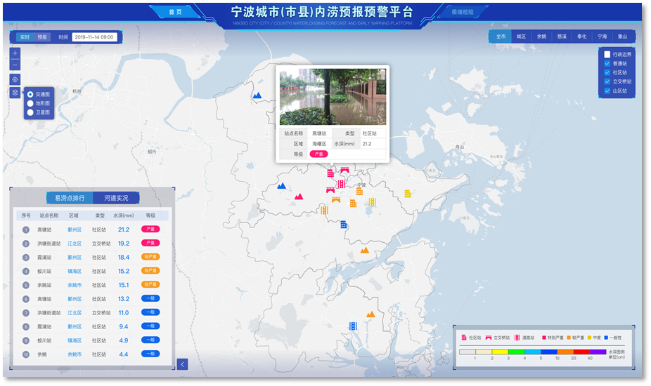 (3)构建了动态与静态数据智能融合的降水预报模型,并在此基础上发展了基于降水精细化预报弹性栅格系统与积水实时监测信息的城市内涝深度学习预报预警技术。